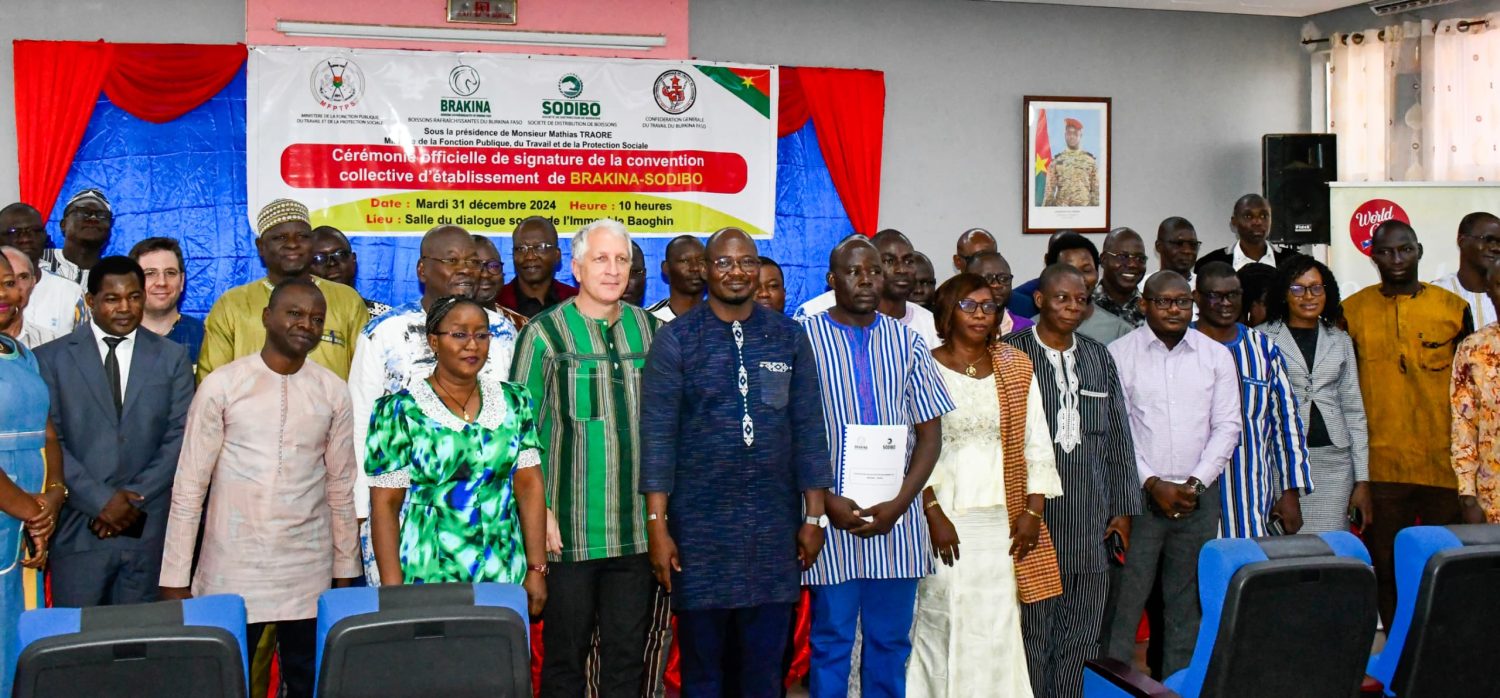 Le 31 décembre 2024 à Ouagadougou, dans la grande salle du dialogue social de l’immeuble Baoghin, une étape importante a été franchie dans le dialogue social au Burkina Faso. La signature de là dite convention s’est tenue en présence des employés, des partenaires de l’entreprise ainsi que des représentant du ministère. Les discours de M. […]